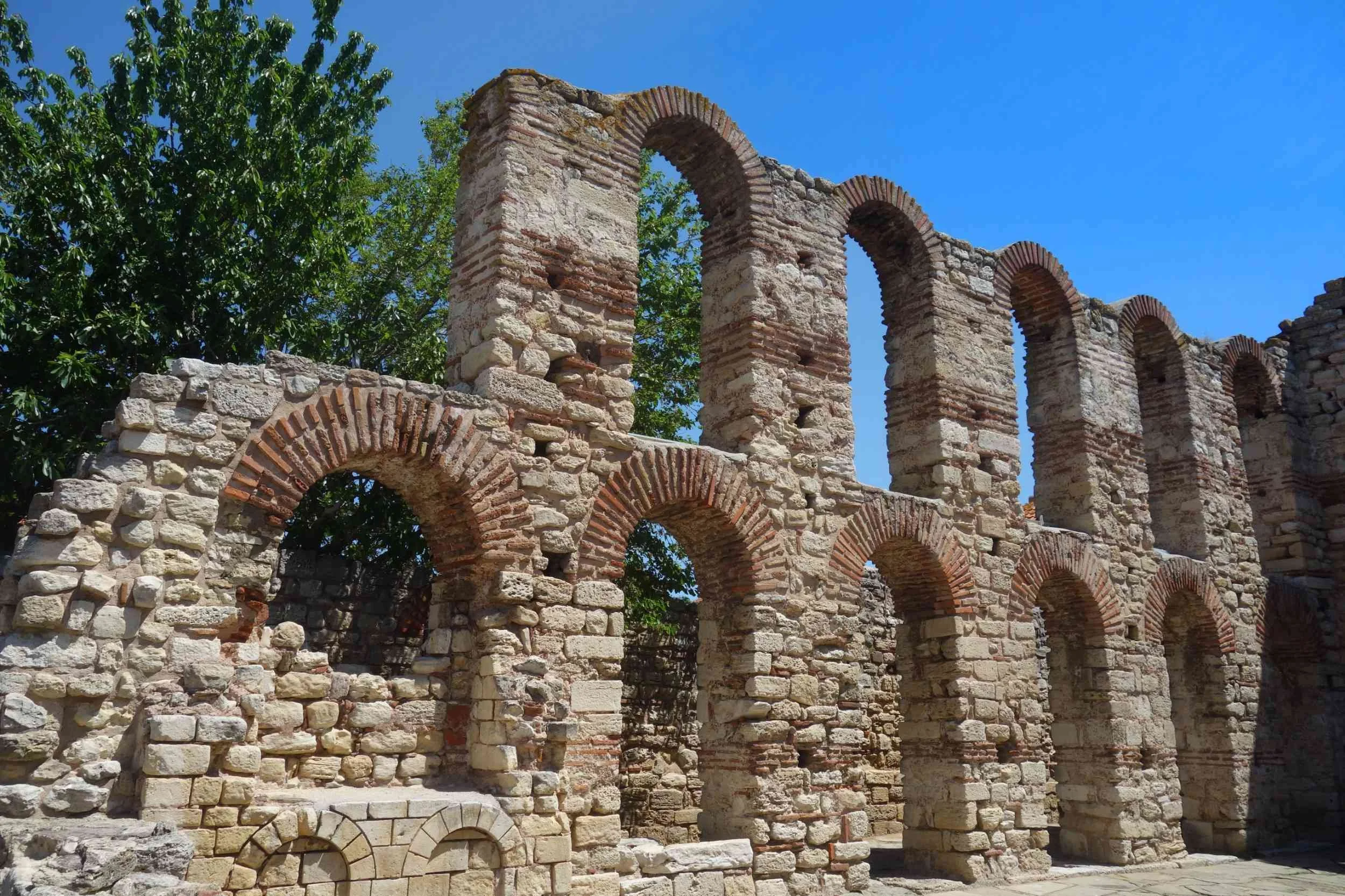 UNESCO World Heritage Site Nesebar (Nessebar), on Bulgaria’s Black Sea coast, is populated with Byzantine-era ruins along the Old Town’s cobblestone and flower-filled alleyways. Historical sites abound, topped by Saint Stephen’s Church, with frescoes on the exterior walls, as well as adorning every available space of the interior. Other noteworthy sites are the Church of Saint Sophia, with its stone columns and brick arches; the partially preserved Church of the Holy Archangels Michael and Gabriel, the ornate stone facade of the Church of Christ Pantocrator; and the still active Church of Formation of Theotokos.